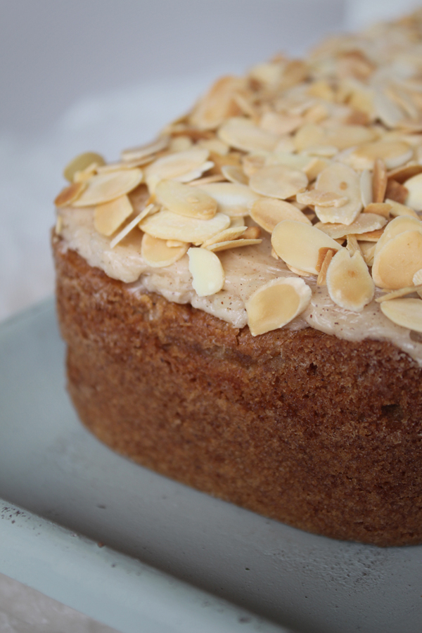 Kanel- och päronkaka med honungssmör och rostad mandel